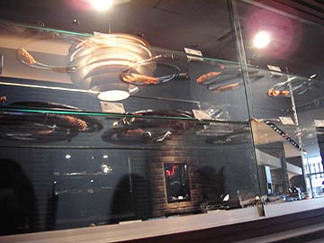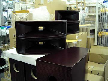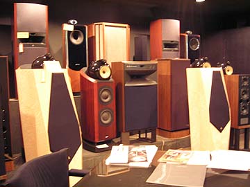 | 今回一番感銘したのは、ハイエンドケーブルの展示コーナーだった。一階奥に位置している。ジュエリーショップと見紛うがごとき展示風景に唖然。手前のショーウインドウ内にはクリスタルケーブルの製品群が宝石のごとく陳列されている。写真には映っていないが、隣りにも同様のケースが置かれている。そこにはアコースティックゼンやエソテリックのケーブルやプラグが並んでいた。 この一角の奥には、20畳以上はありそうな部屋が設けられており、そこにはゴールドムントで固められた大型システムがどかんと置かれていた。写真でお見せ出来ないのが残念。 1階にはディナウディオのスピーカーラインナップが多数陳列されている区画もあり、なかなか良い音で鳴っていた。 |