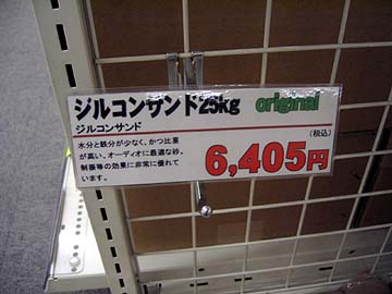 | こちらはジルコンサンドの徳用サイズ。25kg入りで6,405円だ。昔、これを持って帰った事がある。ホントに重かったなぁ。ジルコンサンドの扱い店はさほど多くない。秋葉原ではコイズミ無線のみのはず。厳密に言うと、ホワイトジルコンというものが秋葉原エンゼルポケットで売られている。東急ハンズの園芸コーナーや素材フロアでもジルコンサンドは売られている。「素材探検隊」という商品群の中にジルコンサンドがラインナップされている。「オセアニアの砂」として売れられいるのがジルコンサンドだ。重量単価に換算するとコイズミ無線よりかなり高め。 | ||||||||||||||||||||||||||||||||||||||||||||||||||||||||||||||||