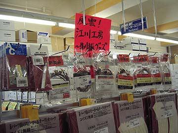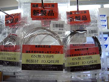 | こちらはコイズミ無線本店の「風雲!江川工房」コーナー。制振アクセサリーやケーブル類が多数陳列されている。 | ||||||||||||||||||||||||||||||||||||||||||||||||||||||||||||||||