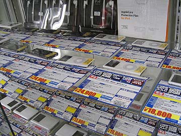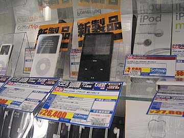 | こちらはソフマップ秋葉原11号店。11月中旬。最新型iPodが早くも中古で並んだ。価格は26,400円。翌日には売れていた。右はiPod-nanoの中古。中古で大量に並んでいるという事は、使い勝手かなにかが悪く手放してしまったということなのかなぁ。 | ||||||||||||||||||||||||||||||||||||||||||||||||||||||||||||||||