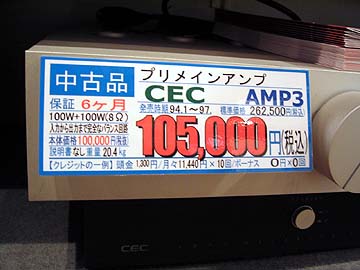 | こちらはオーディオユニオン新宿店。11月下旬。CECのAMP3を発見。独特のデザインが面白い。AMP3は久しぶりに見かけた。この値段だったらお買い得なんじゃないかな。 | ||||||||||||||||||||||||||||||||||||||||||||||||||||||||||||||||