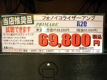 | PRIMAREの新製品で注目すべきは、このフォノイコライザーアンプR20。手頃な値段の新製品だ。製品数が増えつつあるフォノイコ市場。そこに新たな新星が出現したという感じかな。R20はオーディオユニオンお茶の水店の4階試聴システムにも組み込まれている。 | ||||||||||||||||||||||||||||||||||||||||||||||||||||||||||||||||