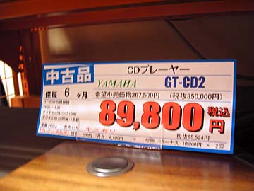 | ヤマハのGT-CD2。同社の最高峰CDプレーヤーGT-CD1の弟機にあたる。高剛性シャーシにリジッドマウントメカを組み合わせた重量級プレーヤーだ。発売から10年以上経過しているはずだが、この造りで89,800円ってのはけっこうお買い得なんじゃないかな。以前、同機が都内系列店で売られていた時は、もっと高値だったはず。