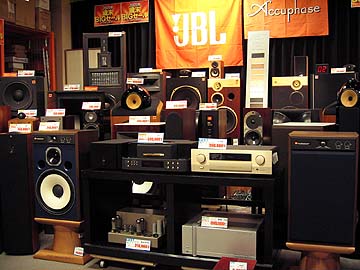 | 店舗に近づくと、店内が暗い。人影も見えない。ありゃ?今日は休店日か!?と残念に思い、せめてガラス越しにでも店内を覗いてみようとした。すると、自動ドアが開いたではないか。そう、今日は営業日。店内照明が暗いので、私が勘違いしただけだった。道路に面したショーウインドウにはずらりと高級機器が並んでいた。 | ||||||||||||||||||||||||||||||||||||||||||||||||||||||||||||||||