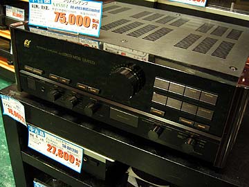 | こちらはオーディオユニオン柏店。中古スピーカーの在庫量は多い方だ。都内から離れているため来店者数は少ない。サンスイのAU-α907MOSLimitedが入荷。75,000円の値付けは平均的か、ややお得。現状販売の保証無し。ガラスパネルの気泡はない。状態は良さそうだ。同機は長岡先生がお使いになられていた。その影響からか、相当年式が経っているにも関わらず人気が高い。 | ||||||||||||||||||||||||||||||||||||||||||||||||||||||||||||||||