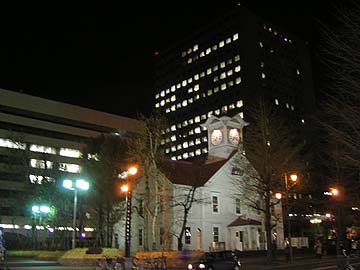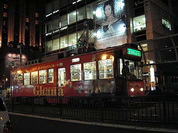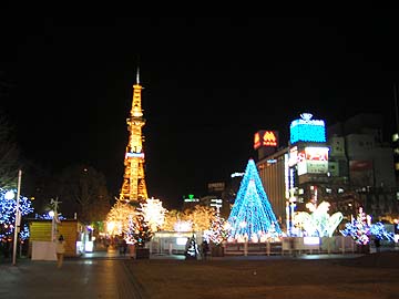 | 札幌ついでに札幌市内の昨夜の様子をちょっと紹介。これは札幌市中心部にそびえるテレビ塔。東京タワーを寸図まりにしたようなデザインだ。手前の広場では、現在イルミネーション点灯がおこなわれていた。札幌雪祭りの会場にもなる場所らしい。 右は市内を走っている路面電車。東急ハンズ札幌店付近で撮影。なかなか味のある面構えに思わずシャッターを切った。 市内の気温は1度くらい。厚着をしていったので、寒さが身にしみるほどではなかった。2月頃には市内にも雪が降り積もり、外出するのがおっくうになるほど寒くなるらしい。 |