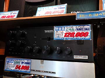 | GASのプリアンプ。THAEDRA2(テドラ2)。GASのアンプは1970年代の製品になるのだが、いまだに根強いファンがいる。オーディオユニオンは基本的にあまりに古い製品は扱わないのだが、GASなどの人気ビンテージオーディオとなると話は別。必ず買い手が付くので、同系列店では、GASの出物を最近特に多く見かける。 | ||||||||||||||||||||||||||||||||||||||||||||||||||||||||||||||||