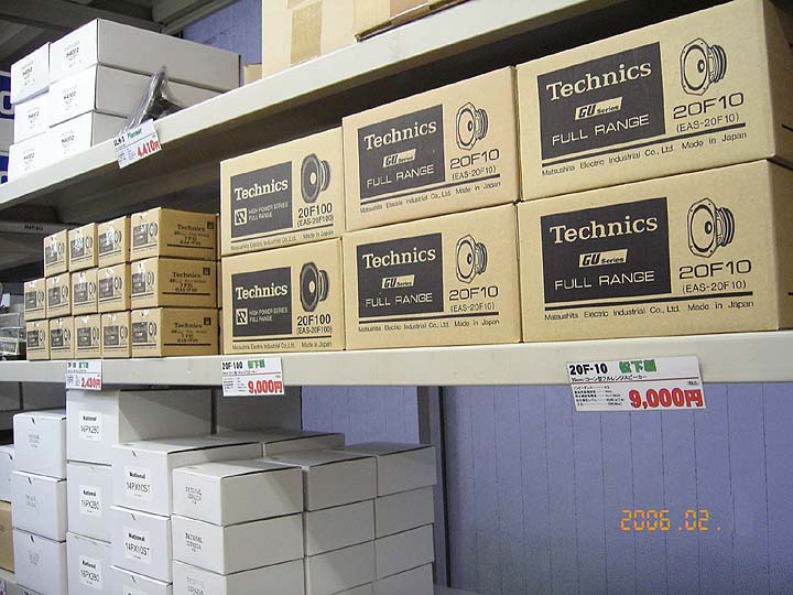 | 先にも少し触れたが、テクニクスのEASユニットはすでに店頭在庫限り。かなり少なくなった。いつ生産が終了されるか危ぶまれつつも、店頭に並び続けたテクニクスユニット。しかしながらついに、2年ほど前から製造中止になっていた。つまり、オーディオ店での在庫限りとなっているのだが、その在庫も段々と少なくなってきた。コイズミの在庫は、写真に写っているユニットのみだ。手前よりEAS-20F10/EAS-20F100/EAS-7F10。これ以外はもう無いそうだ。テクニクスのユニットは、フォステクスの製品と並んで、自作スピーカー御用達のユニットだった。もうじき姿を消してしまうとは、ちょっと悲しい。特に、F100シリーズはボーカル帯域に秀でたフルレンジユニットとして人気があった。欲しい人は今のうちに買い込んでおくべし。 | ||||||||||||||||||||||||||||||||||||||||||||||||||||||||||||||||