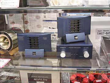 | 4階奥の試聴システム。現在はプライマーのプリメインアンプが据え置かれている。アンプ下部に見えるのは、サンシャイン(KRYPTONPROFESSIONAL)の純マグネシウムインシュレーターM1/スパイク受けM2。M1/M2の4組セットで1万円弱という低価格。今流行のスパイク/スパイク受けの形状をしている。オーディオアクセサリー誌120号のインシュレーター特集221ページに紹介されているやつだ。評論の信用度に不安があるものの、かなり良さそうな評価を得ていた。手に乗せてみると、非常に軽くてびっくり。アルミより比重が軽いというが、これが金属なのかというふんわりした感触であった。たしかに、いままでにない感触の金属だ。金属というより、木材に近い感触だ。デモ品は無塗装で、仕上げは今一歩。それと、スパイク受けM2の底面のエッジがそのままなので、下手をするとボードに傷がつくと思った。メーカーの考えとしては、とかく高額になりがちなアクセサリー市場において、良い品を安く提供するというポリシーがあるらしいので、凝った仕上げをあえて排除しているのかとも思った。それと、マグネシウムの加工自体が難しい事のようなので、仕上げまで手が回らないということもあるのかもしれない。ただ、同社のブログを読むと、製品版へのメッキ処理を検討しているようだ。3月中には発売できるよう努力しているということなので、大いに期待したい。たぶん、このインシュレーター、仕上げをきちんとすれば、爆発的なヒットになりそうな気がする。世界初の純マグネシウムインシュレーター、低価格で性能も抜群という触れ込みがミソだな。 2月中旬、同店4階には中古オーディオボードが多数入荷した。右上はアコリバの磁気浮上型ボードRMF-40。新品実売は155,400円。これが中古実売で62,000円。2枚入荷したが、先週時点で1枚売れた。残り1枚。また、傷多めの も2台入荷し、値付けは52,000円だった。これはとてもお買い得だったが、今週始めで2台とも売れてしまった。その他、クリプトンのAP-4000が2枚とか、SYMPOSIUMやJ-1projectのボードなど、中古オーディオボードの出物がいつになく頻繁だ。オーディオユニオンお茶の水店アクセサリー館の中古品は、店頭販売や自社サイトの通販以外にも販路を有しているので、在庫は常に流動的。 |