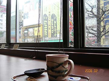 | 私の隠れ家的カフェ、中央通り沿いのCafeMOCOにて休憩。窓外には中央通り大交差点(名前が無いので私が勝手にそう呼んでいる)が垣間見える。真向かいには秋葉館がそびえ立っている。下界の騒がしさとは打って変わって、店内はとても和やか。飲み物の値段も安く、店内はお洒落で、器は和風の焼き物。秋葉原で一息付きたい時、お勧めのスポットですぞ。店内でPowerBookG4を使っている人がいれば、私かも。では、みなさんごきげんよう。 | ||||||||||||||||||||||||||||||||||||||||||||||||||||||||||||||||