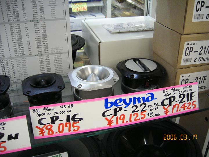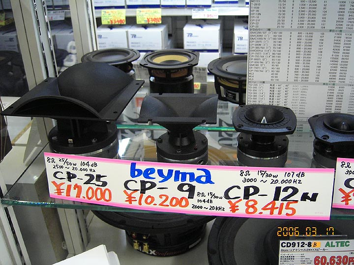 | コイズミ無線本店。beymaという聞き慣れないブランドのツイーターが6種類一斉入荷。スペックは写真をご覧あれ。スロートホーンは鋳物成形。能率はけっこう高め。 | ||||||||||||||||||||||||||||||||||||||||||||||||||||||||||||||||