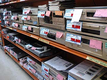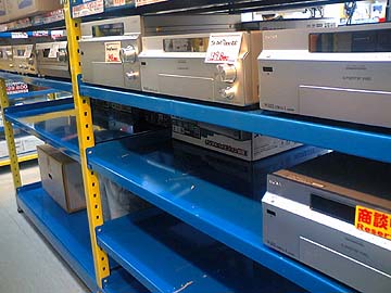 | 同店はPSE騒動が表沙汰になった時点(2月上旬)から規制対象機器の買取りを中止していた。PSEに対し、いち早く反応した店だった。これが仇となった。中古品の買取りを控えてしまったため、同店の店頭販売品は著しく減少。人気商品はたちどころに売れてしまい、2002年以降に販売された製品ばかりが並ぶようになってしまった。ところが、3月中旬になり経済産業省がPSE法の暫定的緩和策を表明。大雑把に言うと、4月以降もPSE規制対象機器の販売続行ができるようになった。事態の推移を受け、同店は規制対象機器の買取りを再開。しかしながら、この1ヶ月あまりの空白はあまりに影響が大きすぎた。在庫の回復にはいましばらく時間が掛かりそうだ。 | ||||||||||||||||||||||||||||||||||||||||||||||||||||||||||||||||