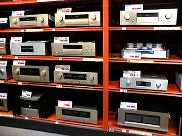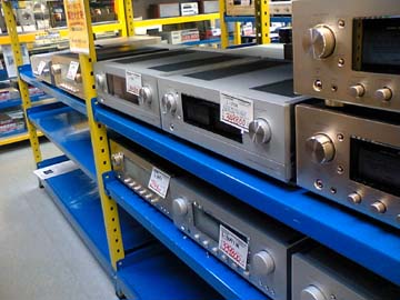 普段より在庫数がずいぶんと減っている。機器間の隙間がずいぶんと目立つのだ。在庫減少の原因は第一に、同系列店において開催された決算セール。ただ、私が感じるに、例年の決算セールに比して明らかに在庫数の減少が著しすぎる。これにはPSE騒動が明らかに影響している。まず、規制開始前に買わねばと焦ったオーディオマニアが少なからずおり、規制対象予定機器が飛ぶように売れてしまった影響。マークレビンソンなどの人気ブランドに関して、この動きは特に顕著だった。中古品の入荷情報があると、現物確認無しに売約するマニアが少なからずいたという。さらに、同系列店が一時的に2001年以前の製品買取りを中止していた影響も大きい。さらには、ビンテージ機器の希少価値を見込んだユーザーが、下取り供出を控えてしまった事。これら複数の要因が重なって、店頭在庫が減少したものと思われる。なお、現在はオーディオユニオンがPSE検査の実施をおこなうことに決めたことと、経済産業省による同店へのビンテージ機器への規制緩和承認によって、在庫減の事態は解消に向かいつつある。 |