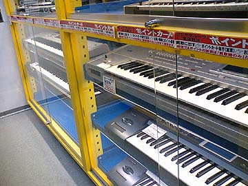 | 普段はゴールドムントなどの高級機器が並んでいる棚にはキーボードが並んでいた。出物だと思えたのは、マランツプリアンプAF-01くらいだった。普段はもっと多くの希少品が目につくはずなのに。 | ||||||||||||||||||||||||||||||||||||||||||||||||||||||||||||||||
