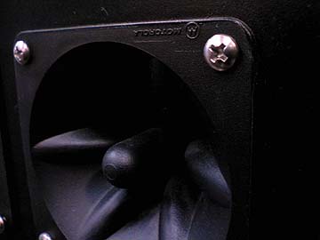| ツイーターのフレームは樹脂製。MOTOROLA(モトローラ)のマークが刻印されていた。モトローラがスピーカーユニットを製造していたとは、つゆぞ知らなんだ。右写真はミッドレンジに相当するであろうユニット。これはたぶんアルパインのDDDS5だ。センターコーンが凹んでいる。公共の場に設置されるむき出しユニットの宿命である。このスピーカーを見たい人は、ラフォーレ原宿の2.5階に行ってみよう。 | ||||||||||||||||||||||||||||||||||||||||||||||||||||||||||||||||