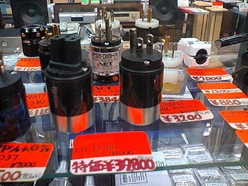 右はテレオンサウンド110の3階。たぶん2月頃からだろうか、エソテリックの超高級ACプラグ/IECコネクターが特価販売されている。特価とは言ってもペア39,800円であり、おいそれと手が出せるものではない。定価はペア84,000円。たぶん、史上最高額のACプラグ/IECコネクターだろう。なお、同製品はオヤイデ電気の手によって開発された。 きょうはこれまで。ではでは。 |