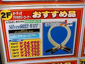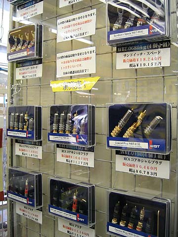 | オヤイデ電気店頭に展示されているWBTのプラグ類。先月から大々的に取扱を開始。75Ω伝送に完全適合したネクスジェンプラグもある。 | ||||||||||||||||||||||||||||||||||||||||||||||||||||||||||||||||