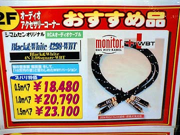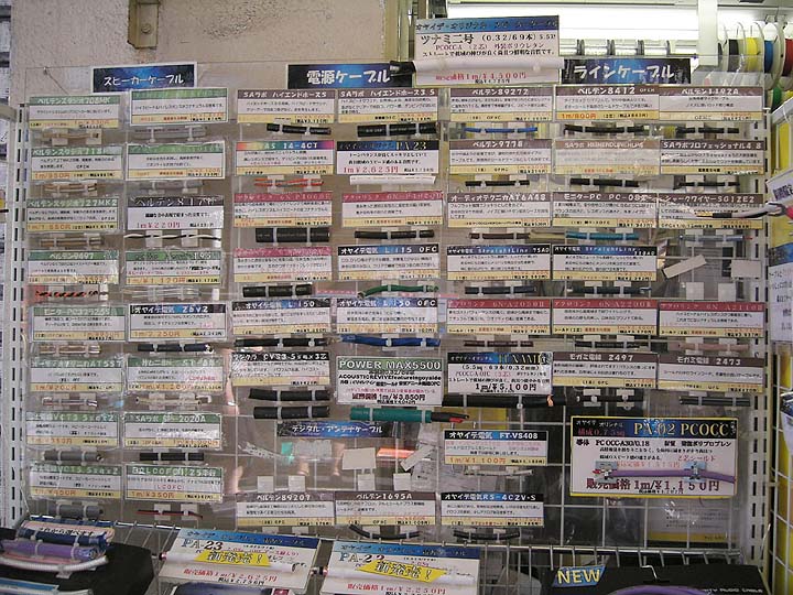 | シマムセン。店の入り口は普通の電気店。1階はポータブルオーディオやミニコンポ。2-3階がオーディオ専門フロアとなっている。評論家を招いての試聴会も度々開催している。右は2階にある電源アクセサリーショーウィンドウ。小さい店舗の割にはなかなかの品揃え。 | ||||||||||||||||||||||||||||||||||||||||||||||||||||||||||||||||