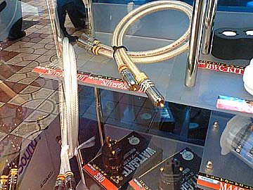 | シマムセン店頭のショーウィンドウ内に飾られているオリジナルケーブルたち。