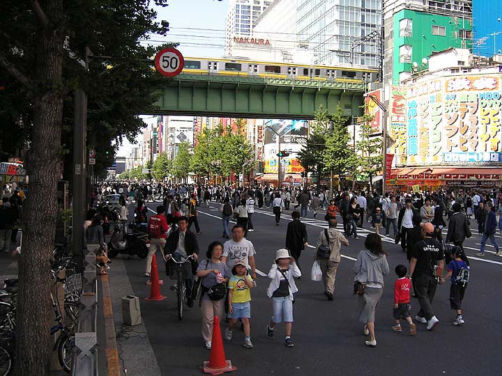 | 秋葉原の中心街。中央通り秋葉原駅前西口交差点付近。本日は休日ということもあり、中央通りは歩行者天国になっている。それにしても、もの凄い人の多さだ。普段の休日より明らかに人が多い。普段は見かけない家族連れが多数見受けられた。お店の人も言っていたが、通常の土日の倍以上の人口密度だ。まして、本日は連休まっただ中。地方からの遠征オタク、家族連れ、修学旅行の学生たち、団体バスで来る観光客などがどっと押し寄せている。その密度たるや、いまにも臨界点に達しそうな勢いであった。写真に写っているあたりの人の多さはまだマシ。中央通り大交差点から末広町交差点にかけて(この道の先の方)は尋常ならざる人口密度。いわゆるコスプレ系のイベントが催されているものと推察。休日の秋葉原は、いまやコミケのコスプレ会場と同じ状態。その分野は私のやや範疇外なので、さっさとオーディオ店巡りする事にする。 | ||||||||||||||||||||||||||||||||||||||||||||||||||||||||||||||||