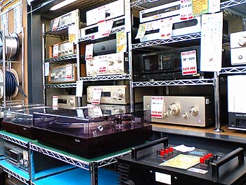 | 左はダイナミックオーディオ秋葉原ハイブランド買取りセンター。秋葉原の中古オーディオ店の中で、最も流動的に中古機器が入れ替わるお店だ。さもあらん、同店はダイナ系列店の中古買取を一手に引き受けているからだ。同買取りセンターはこの数年間、秋葉原内を転々とした上、旧原宿店に移転。原宿店を閉鎖し、一年ほど前に秋葉原の中心街に舞い戻ってきた。従来の同買取りセンターは、中古買取専門であり、中古販売は同系列の他店にまかせていた。ところが、同買取りセンターが秋葉原に戻って来たのを皮切りに、中古品の販売もおこなうことになった。なかなかの珍品、名機に出会える店である。秋葉原の中心街にあるので、来店者も多い。レアな出物を見つけた時、その場で押さえておくこと。おっと思う稀少品は、店頭に並んだ翌日には売れてしまっていることが多い。