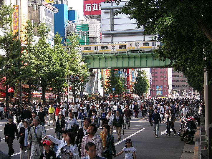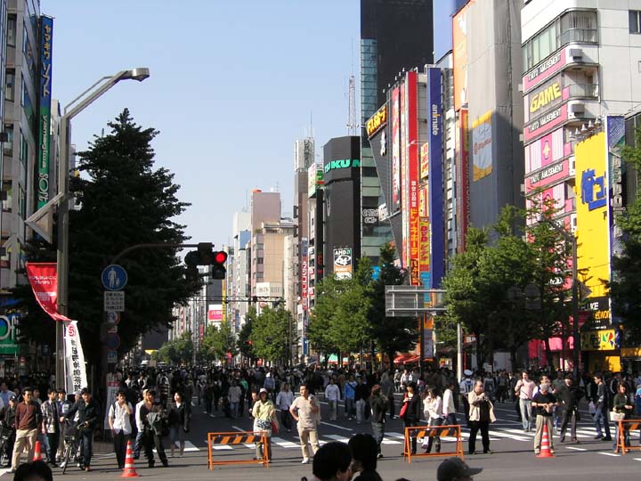 | 5月4日。サトームセン本店前あたりから中央通りを望む。連休中なので家族連れが多い。団体バスで降り立つ観光客、アキバ族、外国人、地方遠征オタクが入り交じる。普段の休日の2倍増しの人出だ。 | ||||||||||||||||||||||||||||||||||||||||||||||||||||||||||||||||
