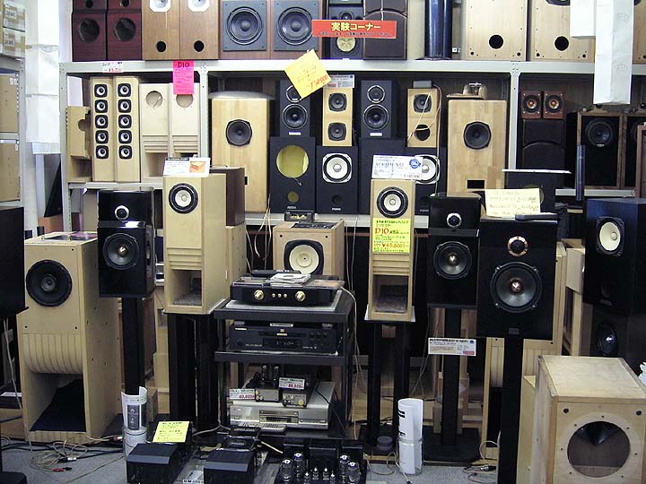 | コイズミ無線本店の実験コーナー。店の奥にある。常時、スピーカーの試聴が出来る。オーディオ雑誌で掲載された作例スピーカーなども陳列されている。コイズミ無線なくして、自作スピーカーの世界は語れない。 | ||||||||||||||||||||||||||||||||||||||||||||||||||||||||||||||||