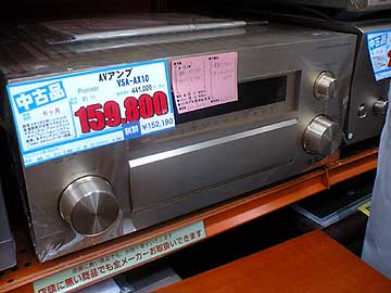 | 左はパイオニアのマルチチャンネルアンプVSA-AX8。2001年発売。定価29万円。中古価格は94,800円。ここ1年余りでずいぶんと安くなったものだ。右はVSA-AX10。2001年発売。定価42万円。中古価格159,800円は高い。現在は13万切りくらいが適切と思う。パッと見の外見はVSA-AX8と上位機VSA-AX10では見分けがつかない。シャーシ構造や内部パーツ、背面端子などに価格相応の違いがあるようだ。 | ||||||||||||||||||||||||||||||||||||||||||||||||||||||||||||||||