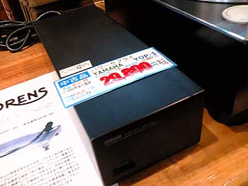 | おっとこれは貴重な!ヤマハYOP-1だ。中古市場に滅多に出ない珍品だ。YOP-1はGT-2000の外付け強化電源。GT-2000オーナー垂涎のアイテムなのだ。これを使う事でターンテーブルの回転が安定し、音質が向上するというわけ。GT-2000シリーズとはキャノン端子で接続する。定価33,800円。中古29,800円。20年近く前の製品が定価とさほど変わらぬ値段で売られているのはおかしいんじゃないかと思われるかも知れない。けど、YOP-1は引く手数多なので、この値段はかなりお買い得。GT-2000ユーザー以外には関係ない装置ではあるが。