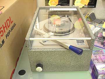 | ダイナミックオデーィオニュー秋葉原センター植木店。GLASS-AUDIO DESK SYSTEME CDサウンド・アップグレーダーがまだあった。29,800円だったかな。新品実売の半値ほど。CDのエッジをこの装置を用いて一定の角度で削ると音質が向上するという。ディスクの音質向上アイテムと言うのはごまんと存在するが、ディスクの形状をあからさまに変化させて音質向上を図るアイテムというのは数少ない。あたりまえだが、削ったら最後、元には戻せない。使うのにちょっと勇気のいる装置だ。雑誌でもちょこっと取り上げられたくらいなので、知名度はイマイチのアクセサリー。最近、同じようなディスクエッジ処理を1枚数百円でやってくれるサービスがあったような。この日は植木店長と1時間ほど話し込んだのであった。何も買わなくてすんません。 | ||||||||||||||||||||||||||||||||||||||||||||||||||||||||||||||||
