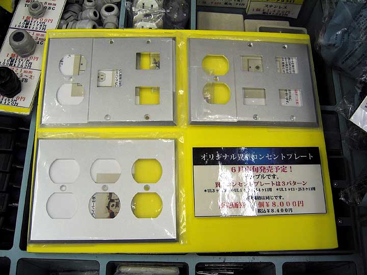| オヤイデの異形コンセントプレートに新型登場。ご覧の通りの3パターン。壁コンセントに使う用途があるかどうかは微妙なところだが、UL規格コンセント3個搭載用のプレート(左下のプレート)は利用価値あり。いままでUL規格コンセント3個に対応出来るプレートは入手困難であった。ULコンセント6個口電源ボックスの自作を考えている人にとって、このプレートは必須のアイテムになりえる。1枚8,000円というのは高いと思われるかも知れない。厚肉アルミの高精度NC切削加工なので、このくらいの価格になるのは仕方ないと思う。 | ||||||||||||||||||||||||||||||||||||||||||||||||||||||||||||||||