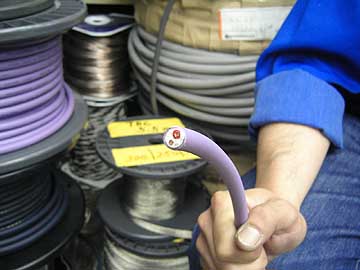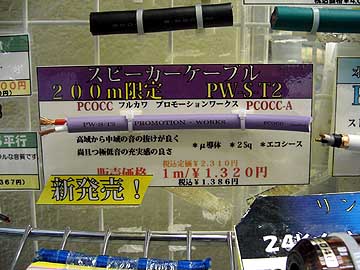 | 古河電線の新型スピーカーケーブルPWST2。2芯ノンシールド。介在物は綿糸。導体断面積は2スケア。導体にPCOCCμ導体とPCOCC-Aを採用。導体中心部にPCOCC-Aを配置、外周にPCOCCμ導体を逆撚り。高域伝送に優れたPCOCCと、低域再生に秀でたPCOCC-Aを組み合わせる事で、広帯域に及ぶ解像度向上を図っているらしい。 | ||||||||||||||||||||||||||||||||||||||||||||||||||||||||||||||||