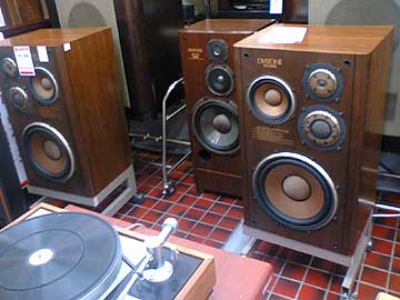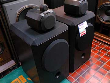 右はB&WのMatrix801S3。ペア定価96万円が中古199,000円。B&Wの比較的初期の作品。うーん、これもいいですなぁ。片側のスピーカーのフロントバッフル上角に目立つ傷があるため、格安になっている。通常、この機種は40万前後の値付けだからだ。工作の心得がある人なら、目立たないようにリペアできるだろう。 |