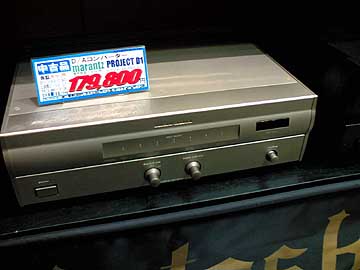 | マランツのD/AコンバーターPROJECT D-1。マランツ製品の中にあって高級D/Aコンバーターとしてこつ然と出現した製品。1998年発売。使った事がないので私自身は音質云々言えないが、かの鈴木哲氏の作品ということで、珍重がられている。フィリップスLHH-900RのDAC部を単体化、強化したものとして、フィリップスCDプレーヤーファンにも引き合いの多いDACである。このデザインと色調はまさしくLHHシリーズそのものだしなぁ。PROJECT D-1の定価は50万円。20万円を切る価格で数年前のハイエンドDACが入手できるとは良い時代になったものだ。なお、同個体はすでに売れてしまっている。