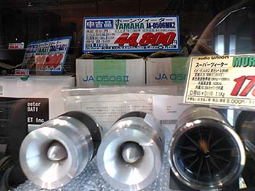 ここ数ヶ月の間中、5本の指に入るであろう珍品。その名はヤマハJA-0506Mk2!Mk2でっせ兄貴!しかも元箱付き。JA0506はヤマハGT-2000シリーズと並んで、プレミアものの名スーパーツイーターだ。ま、長岡派以外の方にはピンと来ないかも知れないが。そもそもこれがオーディオ店の中古市場に出る事はまったくと言っていいほどない。状態はかなり美品。いやーソソられるなぁ。おっと、T90A-EXを買って間もないので、ここは我慢我慢。 JA-0506はしょぼいターミナルだが、JA-0506Mk2は多少マシなターミナルに変更されている。JA-0506Mk2の定価は54,000円。値札の表記によるとJA-0506Mk2の発売年は1979-1990年とある。実に11年間も販売されていたロングセラーモデルだったのだ。長岡鉄男先生が絶賛され、愛用され続けたことが、ロングセラーになった一因だろう。 |