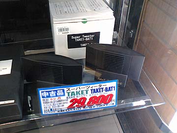 | TAKET(テイクティ)のTAKET-BAT-1が中古ペア29,800円。中古価格としては平均的。BAT-1は今から3年ほど前に発売されたスーパーツイーター。ピエゾフィルムというものを振動板として使用した新方式のスーパーTWだ。江川三郎先生が絶賛されたこともあって、一斉を風靡した。なお、TAKET-BAT-1は現在も現行製品である。