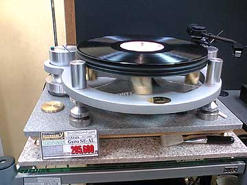 右はMICHELL ENGINEERINGのレコードプレーヤーGyro SE-AL。アームレスで定価357,000円、実売285,600円。同フロアのリファレンスプレーヤーとして鎮座している。 |