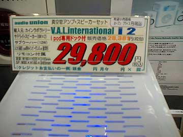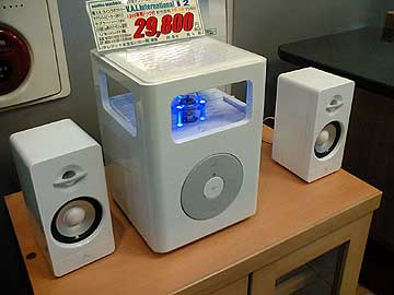 | 1階入り口付近に置かれていた真空管アンプ/スピーカー。V.A.L.internationalのi2という製品。iPod関連製品は相変わらず好調ですなぁ。