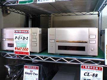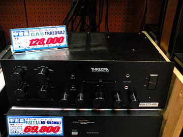 | ところ変わって、こちらはオーディオユニオン吉祥寺店。左はGASのプリアンプTHAEDRA2。先月入荷のもので、すでに売れている。GASのアンプを買う人ってキワモノ好きなんでしょうか。うわさ通りのガッツリとしたサウンドなのかどうか、一度だけ試してみたいものだ。