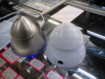 | 木村無線。フォステクスのアクティブコンタクトスピーカーGY-1。愛称は「エアー」。設置場所に振動を与える事によって音を発するという異色のスピーカーだ。当然ながら、置き場所によって音質は大きく変化する。アンプ内蔵。iPodなどのポータブル機器やパソコンの外部スピーカーとしての用途を想定している。その他、多くの構造的特徴があるのだが、説明がめんどいので、詳しくは同社のサイトを見て欲しい。オープンプライスだが、キムラ無線の実売は15,600円。白GY-1-sとシルバーGY-1-wの2色がある。