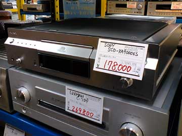 右はソニーのSACDプレーヤーSCD-XA9000ES。2003年発売。現行機種。定価367,500円が中古178,000円。SCD-XA777ESの後継機にあたる。そう、左のDVP-NS9100ESと比べるとほぼ同じフロントパネルだというのが分るだろう。だからどうということはないのだが、なんとなく面白いなぁと。 |
