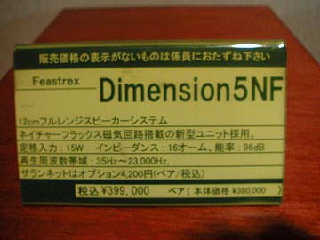| 河口無線3階に見慣れぬスピーカーが並んでいた。札を見た時に一瞬、FOSTEXと書かれているかと思ったが、よーく見るとFeastrexというブランドのDimension5NFというスピーカー。Feastrexは山梨県韮崎市に本拠地を有する。このメーカーのホームページを見ると、ユニットは手作りらしい。このユニット、どこかで見かけた事があるぞ。記憶を辿っていくと、秋葉原のサトームセン本店に陳列されていたなぁ。 | ||||||||||||||||||||||||||||||||||||||||||||||||||||||||||||||||