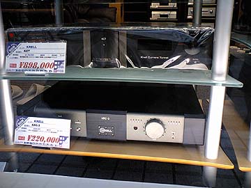 右はKrellのプリアンプKRC-3。1995年発売。定価55万円が、中古22万円。内部回路はフルバランス構成。うーん、今のクレルより、この当時のクレルデザインに惹かれるなぁ。上の黒い製品はKrellの現行プリアンプKCT。175万円が中古898,000円。中古でも高いっすねぇ。これ、新品で購入した人って、どんなハイエンドシステム組んでるんだろうか。 |