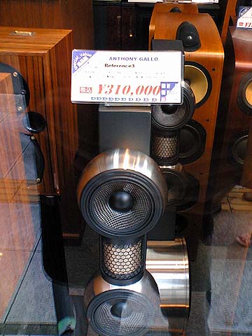 | ANTHONY-GALLO(アンソニーギャロ)のReference3。ユニークな形状をしたスピーカーだ。定価52万円が中古31万円。メーカー展示品だったらしい。ジャズ評論家の寺島靖国さんもReference3はを使用されている。見た目に面白いスピーカーとして買われたようだが。