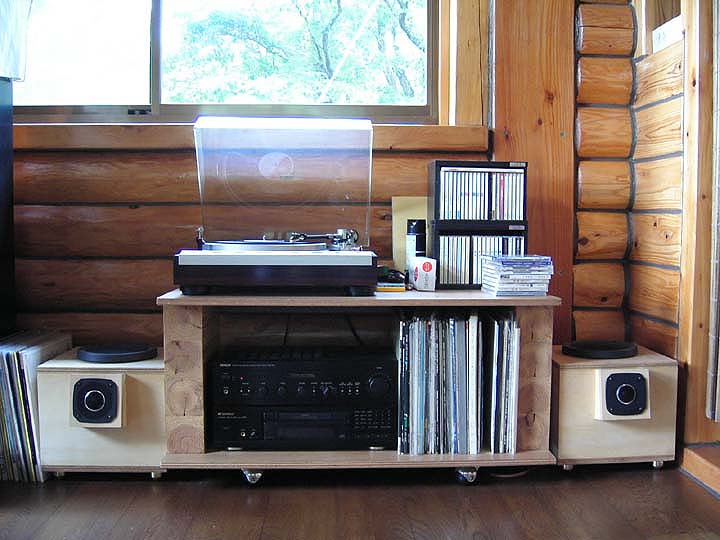 | これが山小屋のオーディオシステム。自慢出来るほどのものではないが、こういうところにあまり大それたシステムが置いてあっても場違いなので、これはこれでいいのだ。そもそもこれは父のシステムなので、私があれこれ言う筋合いはない。父は時折、山小屋を訪れ、音楽を嗜んでいるのである。山小屋の周りには誰も住んでいないので、周りを気にする事無く音楽鑑賞に浸れる。