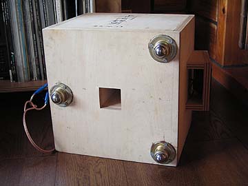 | かるわざの底面。バスレフポートが設けられている。ボール式のキャスターが3点支持にて取り付けられている。長岡先生の製作記事によると、このキャスター自体が優れもので、一種のインシュレーター的な効果を有していると述べられていた。 かるわざの背面にはアッテネーターのツマミがある。ケーブルは直出し。私が同機を入手して以降、いじったのはウーハーユニットFW168をFW168Nに交換したことくらい。昨年のこと、山小屋に野ネズミが侵入。何を思ったのかFW168のダンパーを奇麗に食い尽くしたらしいのだ。父からその報を受けた折、私の手元にはちょうど、第四回長岡鉄男自作スピーカーチャリティーオークションで入手したBS-150があった。私はBS-150の処遇を考えていたところだったのだが、父からの連絡を機に同機を部品取りに使用する事に決定。同機からFW-168Nを外して、父に送った。外したFW-168Nはかるわざに移植。F-52に搭載されていたツイーターFT48Dは、みじんこ次期スピーカーのユニットに流用することに決定。空になったエンクロージュアは希望者を募って譲渡した。これまた奇遇な繋がりでかるわざは息を吹き返した。なお、FW168NにはネズミにかじられないようFOSTEXの純正グリルを取り付けている。 F-52かるわざに関しては、オーディオアクセサリー87号に設計図、板取図込みで製作記が掲載されている。しかしながら、長岡先生のオリジナルスピーカーを再収録した現行本「長岡鉄男のオリジナルスピーカー設計術」全5巻シリーズ(音楽之友社)には収録されていない。図面を入手するには、AA誌87号を古本屋で探すしかない。と、ここまで書いて思ったのだが、そんな昔の雑誌を探し出すのはかなり大変だ。だから、当時の記事をスキャンしたものを載せておく。 |