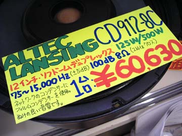 | こちらALTECLANSINGの同軸2wayユニットCD912-8C。いつの間にかCD912-8BからCD912-8Cに進化していた。値段は据え置き。ネットワークコンデンサーの高品質化が図られた模様。 | ||||||||||||||||||||||||||||||||||||||||||||||||||||||||||||||||