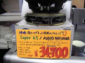 | こちらはAUDIO NIRVANAというブランドのロクハンフルレンジユニットSuper6.5。見た目はダサいが、プロっぽい趣きもある。音は聴いてないので知らん。どんな音がするかは、コイズミ無線のSuper6.5紹介ページに説明されている。強力なマグネットを搭載しており、バックロードに好適とか。ペア34,700円と、けっこう高めなのだが、それ相応の音なんだろうなぁ。 | ||||||||||||||||||||||||||||||||||||||||||||||||||||||||||||||||