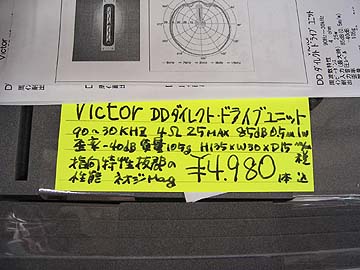 | こちらは日本ビクターのDDDスピーカーのユニット部分のみ販売。限定品。4,980円/本。ビクターのDDDスピーカーはマニア間で「煙突」をあだ名されていた。なにか面白いオリジナルエンクロージュアにはめ込むとか、この小ささを利用して家具などに埋め込むとか、アイデア次第で面白いスピーカーが作れそうだ。たぶんこれ、ビクターの保全パーツの放出品じゃないかな。 | ||||||||||||||||||||||||||||||||||||||||||||||||||||||||||||||||