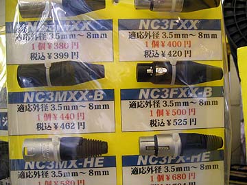 | 左上はノイトリックの新型PHONEプラグNP2C-AU-SILENT。赤い色をしたケースが特徴だ。右上はノイトリックの新型キャノンプラグNC3MXX、NC3FXX。これも最近出た製品だと思う。従来のノイトリックのものに比べて、外見上は、ケースのデザインが変更になっている。内容的な改良があるのかは知らん。